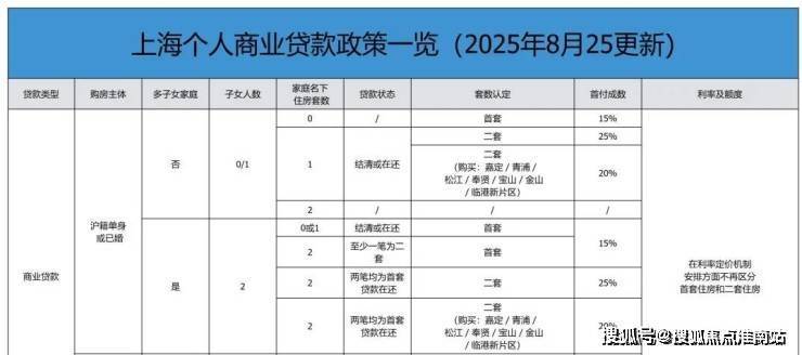 二、上海2025年8月最新购房商贷/公积金贷款政策