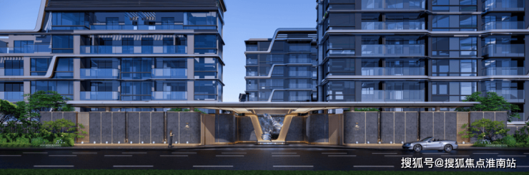 比如入户大门配备大面积的 金属格栅、局部莫奈奢石。