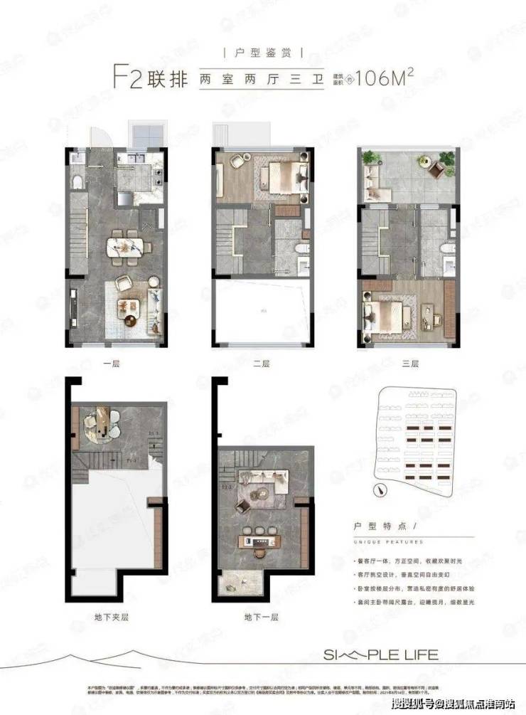 建面约98m²岛居联排美墅