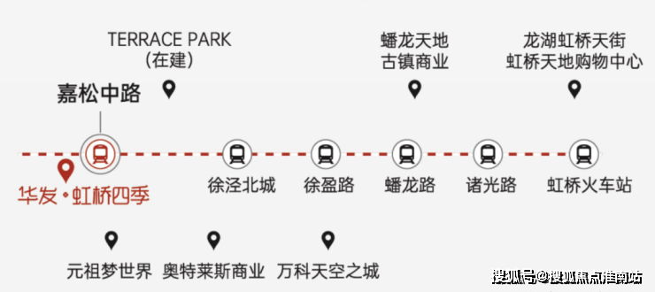 轨道交通方面:项目距离17号线嘉松中路站仅约700米,步行即可到达。2站徐盈路、3站蟠龙路、4站诸光路、5站虹桥火车站,可无缝换乘2号线、10号线、机场联络线(在建中)、嘉闵线(在建中),直达漕河泾开发区、人民广场及市中心各个区域。
