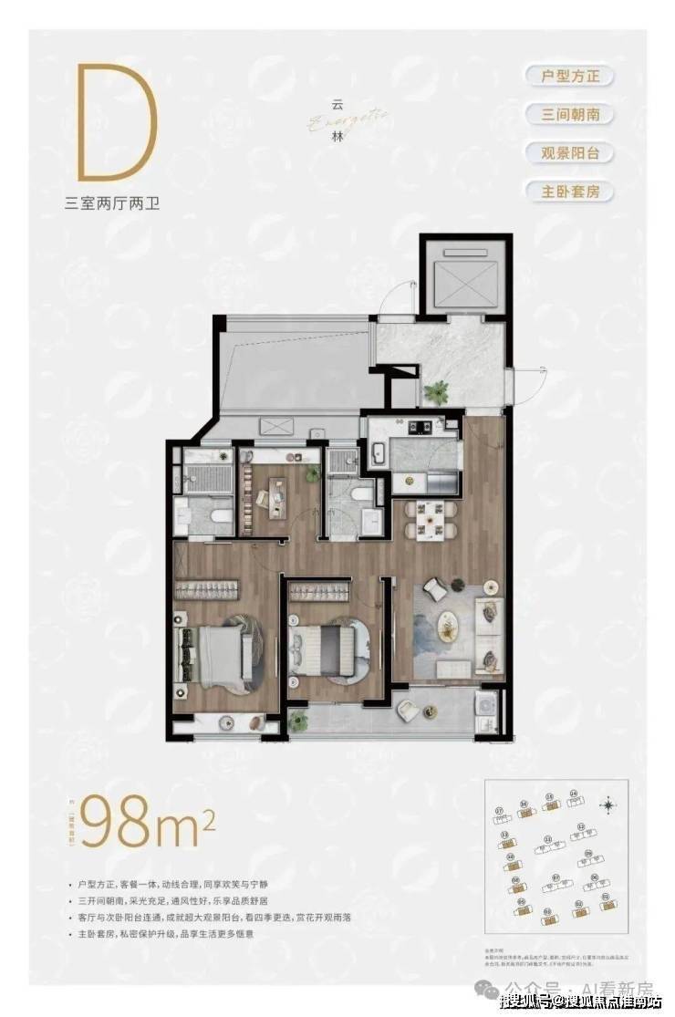 D户型:建面约98㎡3房2厅2卫▼陆家嘴.锦绣云澜售楼处电话:400-8567-334✔✔