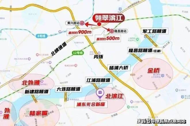 双地铁配置:12号线隆昌路站(直线约600米)直达南京东路,8号线黄兴路站(直线约800米)连接陆家嘴板块