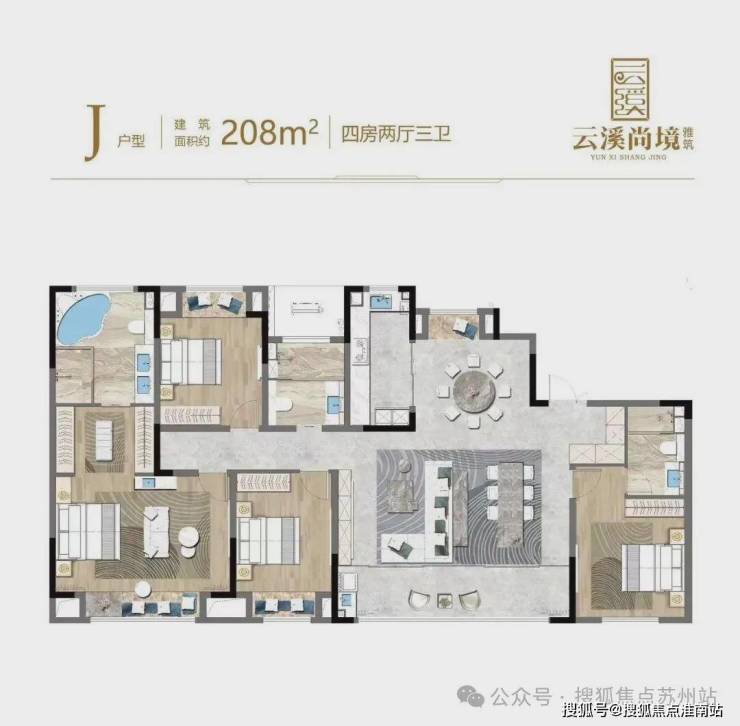 🎈208平米4房2厅三卫户型----近20米超大面宽,菁英的生活排面