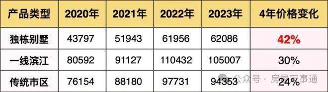 更重要的是,这4年独栋别墅的二手房成交价格变化程度,甚至超越了一线滨江跟传统市区。