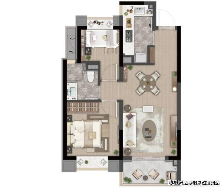 B户型建面约70㎡两室两厅一卫