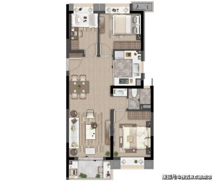 C户型建面约88㎡三室两厅一卫