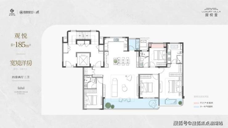 面积:洋房185㎡、上叠235㎡(拓展改造后使用面积约360㎡)、下叠300㎡(拓展改造后使用面积约430㎡)