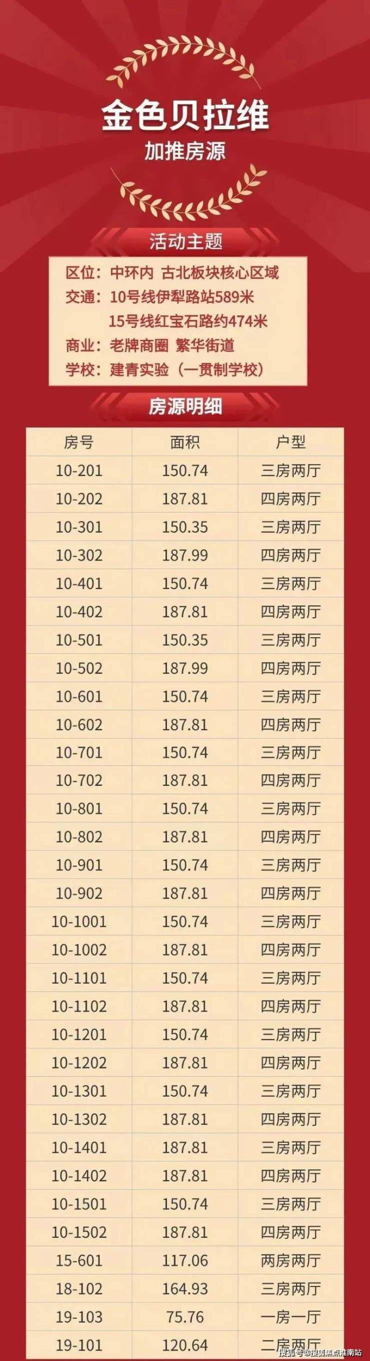 长宁区中环内,古北黄金城道的金色贝拉维住宅整栋认筹, 限时全部95折,此项目只认大筹,认筹金200万,不认小筹!户型为:75㎡1房、149㎡3房、150㎡3房、187㎡4房,最低单价9.8万起。小区对口长宁区建青实验学校(幼儿园至高中部),周边10号线伊犁路站和15号线红宝石路站。