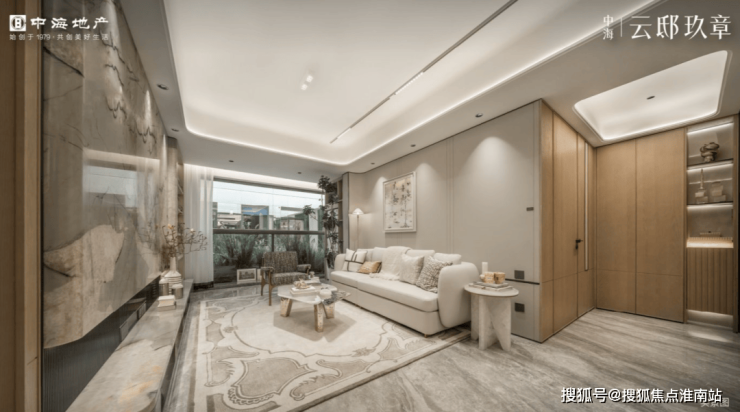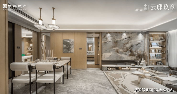 中海云邸玖章售楼处电话☎:400-998-9694✔✔比如,客厅的电视背景墙、地面、主卫、飘窗等区域选材都升级为奢石。另外,客厅沙发背景墙、卧室背景墙升级为精美皮革,木饰面升级为温润影木,室内的豪宅气质更胜往昔!