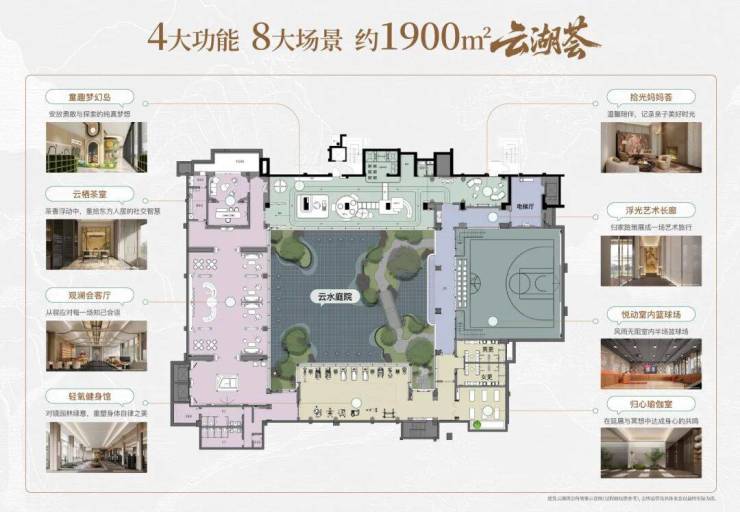 会所配置了宝山首个室内半场篮球场、轻氧健身馆、归心瑜伽室、童梦幻境、艺术长廊等8大主题场景;