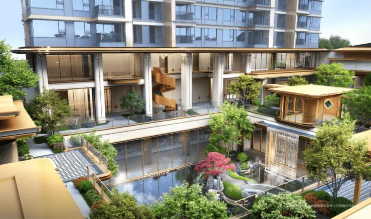 ·景观升级:抬板设计形成立体景观层次,结合水院、下沉庭院、景观长廊,打造多层次园林体验。