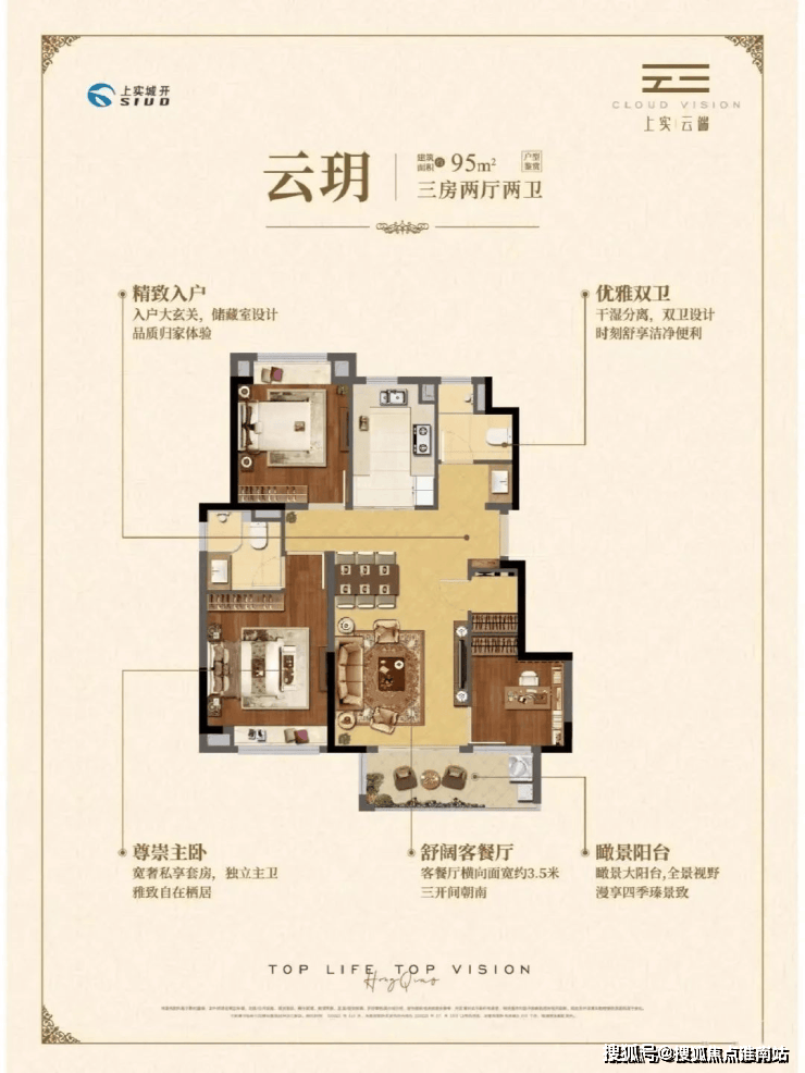 上海青浦上实云端售楼处电话☎:400-9659-259(预约看房热线)约95㎡三房两厅两卫,整体做到了三开间朝南+瞰景大阳台+主卧套房设计+南北通透+卫生间干湿分离。