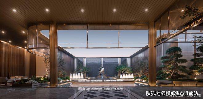 四轴归家体系以仪式水系、艺术连廊、电梯直达地库等设计,重构精英阶层的归家礼仪;