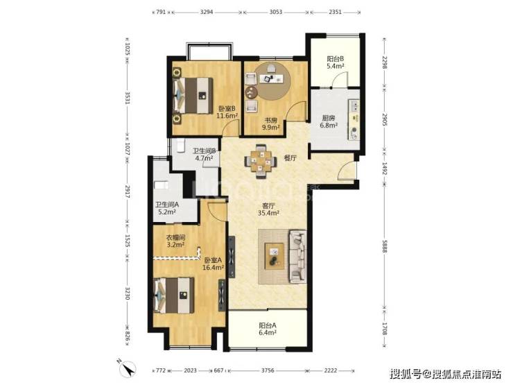 建面约135平3房