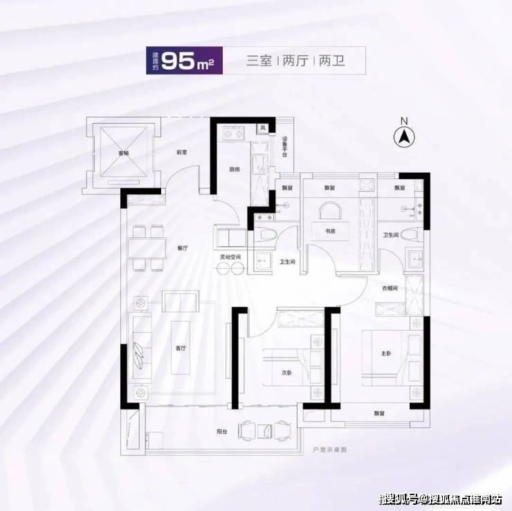 建面约95m²3房2厅2卫