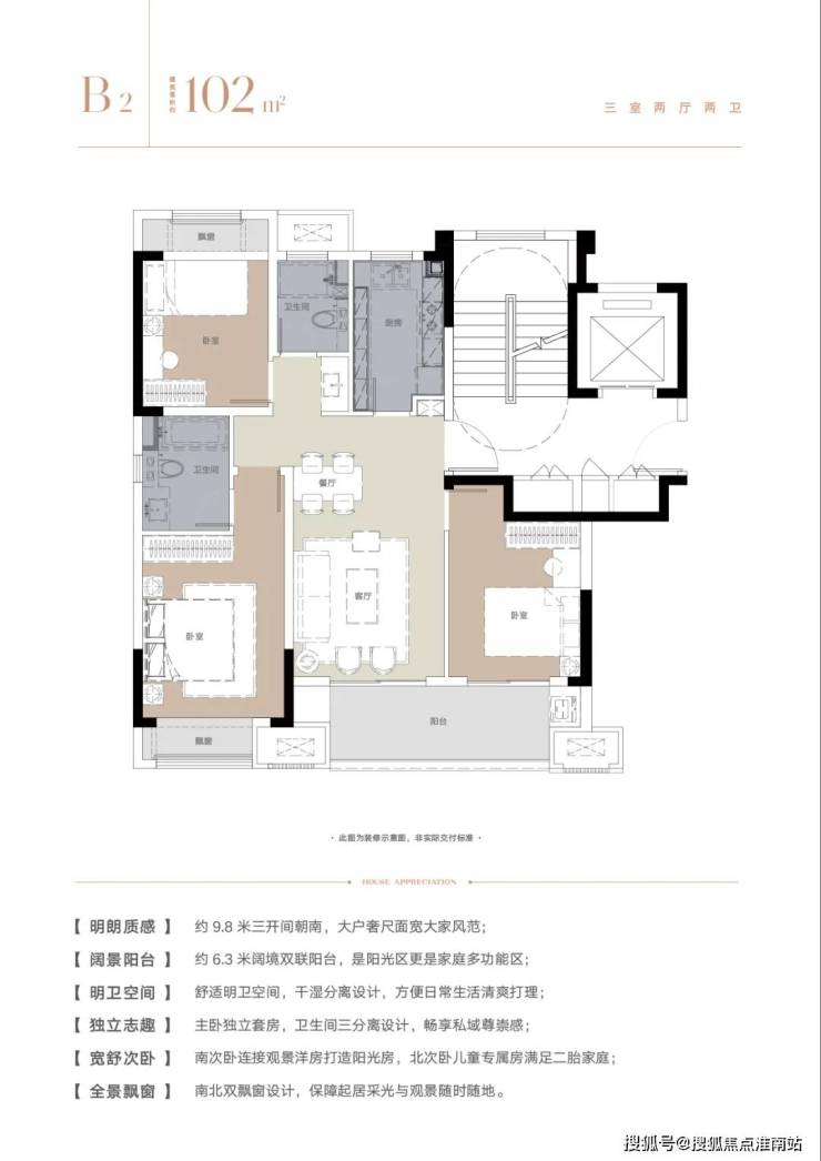 户型优选南北通透方正布局,开间与进深比1:1.5为佳,避开暗卫设计。