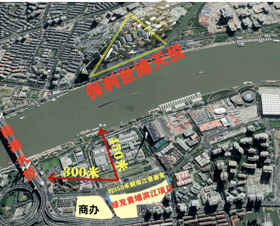 绿发浦江园周边的城市界面相对更新,位于上海当代艺术馆和市南自来水厂北侧,与黄浦江之间仅相隔一个自来水厂以及滨江绿地,几乎没有其他遮挡,基本可以享受一线黄浦江景,岸对面就是浦东世博板块的新盘保利世博天悦,未来就是两大豪宅对望!