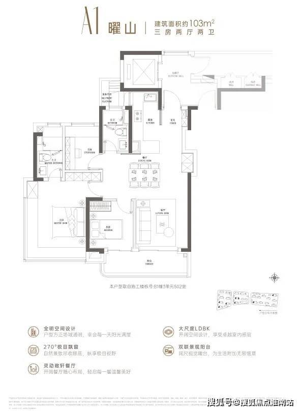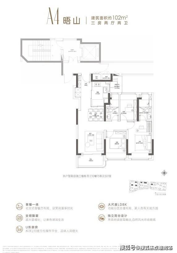 丨四批次入市的户型主要为102-103㎡的小高层三房,相比之前批次同户型的高层,得房率会更高。