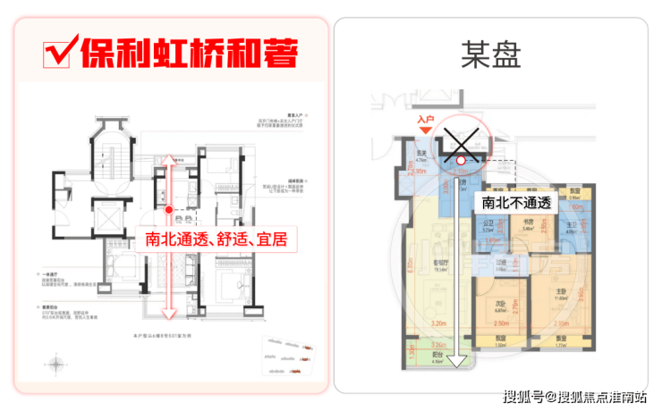 但保利虹桥和著的建面约104㎡3房2卫,却很好的解决了以上所有问题: