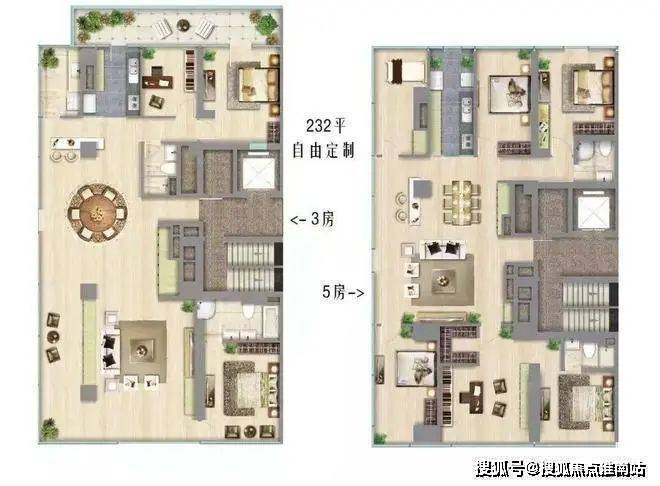 主力户型:200.96㎡至581.07㎡大平层(可定制空间)。