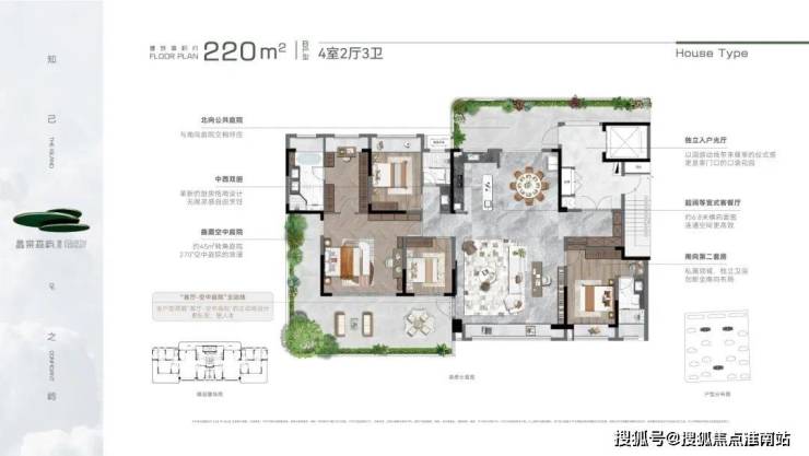 建面约220㎡的「典藏版墅居」堪称空中墅居的终极形态,独门独户+双重归家动线+前庭后院+无界景观+墅级挑高+动静有序+星级主卧。