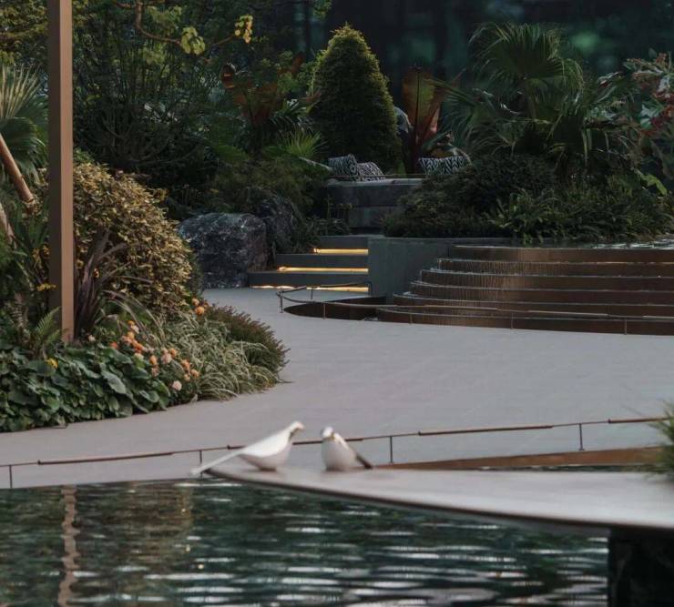 近500平中央水景 + 环形水系:贯穿社区,营造静谧居住氛围