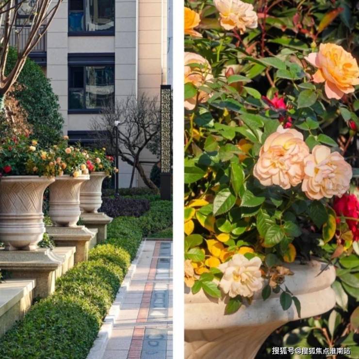 这是一棵屹立在门头处的橄榄树,它从西班牙远渡重洋而来,树龄约有数百年,造价不菲。即使路途再遥远、成本再高,它依旧以如此挺拔的姿态,惊艳众人。两边配置蓬径3米的茶梅球、红枫、造型茶梅金玉满堂·鸿运果等高档精品树木,