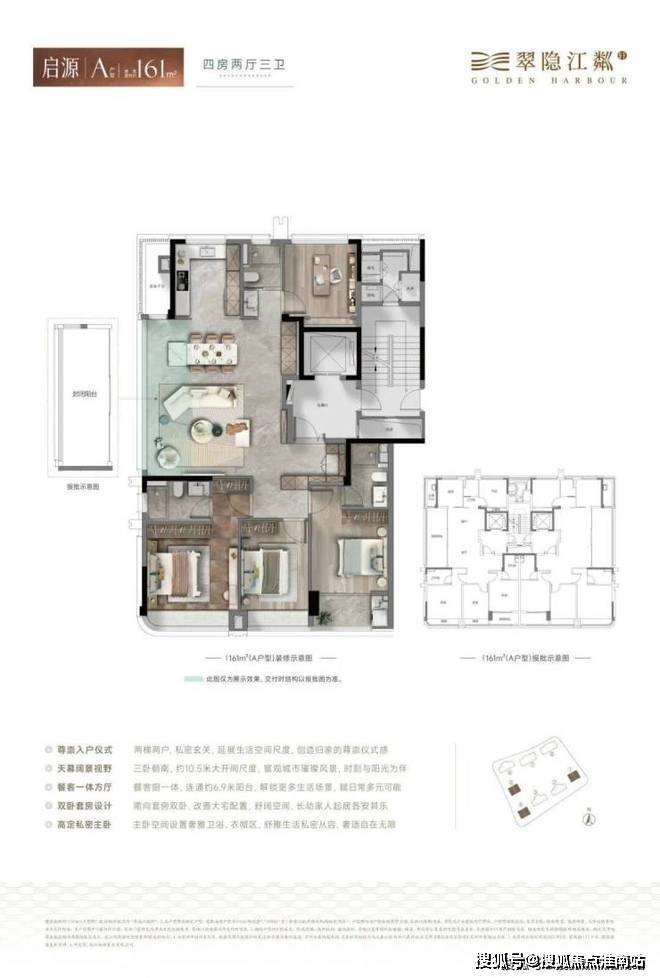 建面约161方采用都市雅奢风格;建面约185方则为雅致隐奢风格。精装配置方面选用东芝、高仪、松下、博世等高档次的一线大牌,精工质感拉满!
