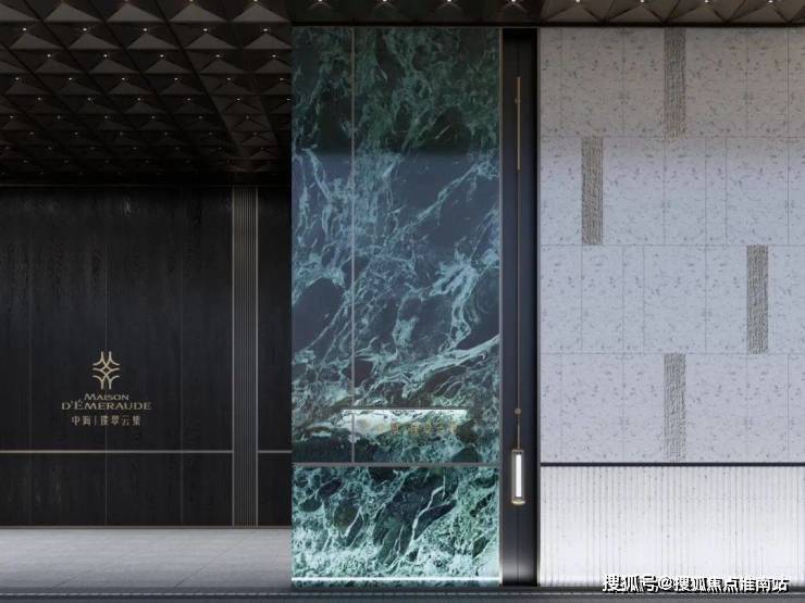 产品层面——更高级。区别于杭州市面上普通的新房,中海·璞翠云集无论是在社区形制,还是户型设计上,都拿出了超乎寻常的水准!是市面上独一份的精心设计。入口处大面的prada绿奢石处理,主墙面浅灰色石材搭配深灰色金属条勾勒,风格现代。火烧面和光面石材的组合,光与影的跃动之下,更显高级。