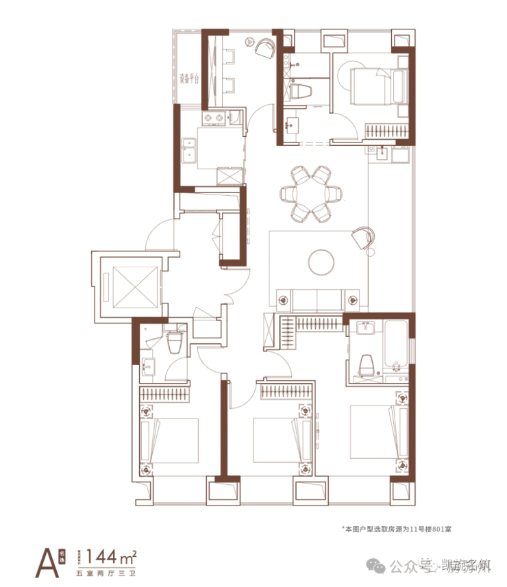 建面约144m²5房3卫