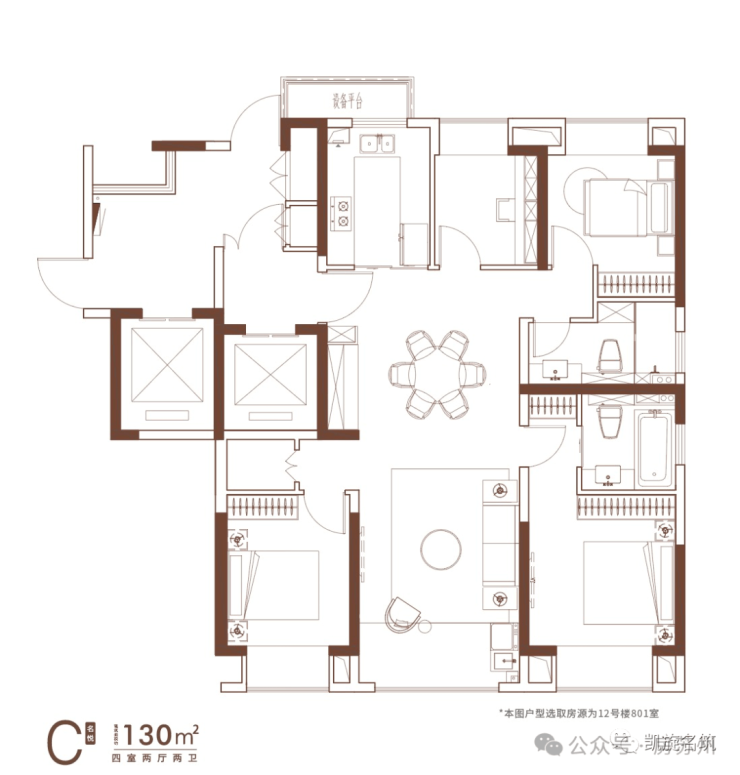 【产品信息】建筑面积约129㎡、130㎡、143㎡、144㎡宽境奢邸