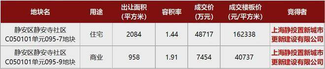 新静安地块0溢价成交,老静安地块163轮竞价才落槌,楼面价超11.4万/㎡。