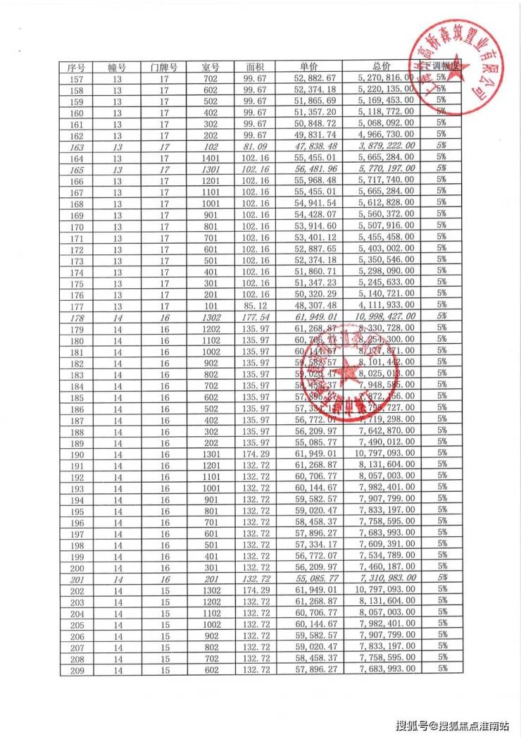 项目一房一价表