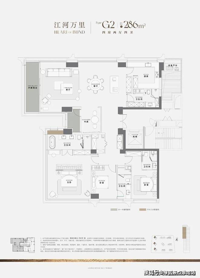 ④三卧全尺度奢适,主卧临窗浴缸瞰江!X空间定制方案可选,实现多场景布置!
