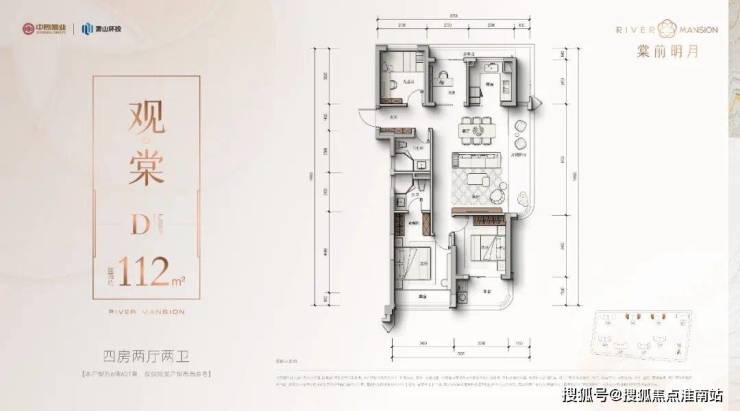 - 112㎡四房边套:双阳台+洄游动线,主卧套房配置独立衣帽间。