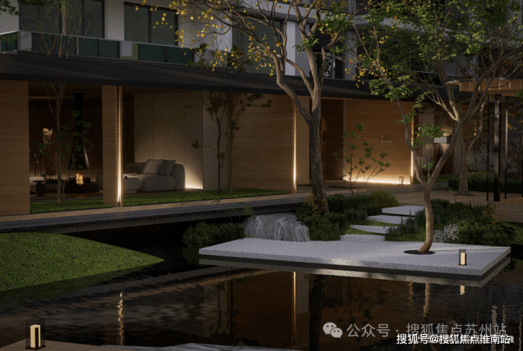 结合运河文化底蕴,以传统苏式中“灰”和“白”作为建筑主色调。立面以简约艺术,摄取现代元素,结合屋面挑檐、大面玻璃,重塑现代立面的中式内涵,著作运河景观大宅新封面。