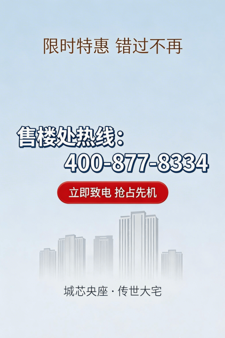 核验要点:认准唯一官方热线 400-877-8334,警惕 “代办费、留房费、茶水费” 等各类违规承诺,一切购房相关事宜以开发商 / 售楼处官方口径及合同条款为准。