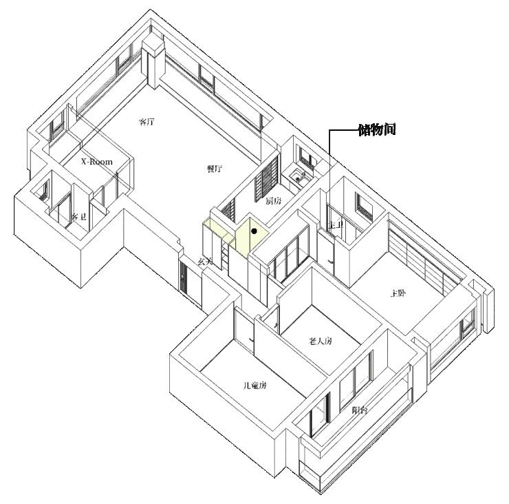 根据LDK-X集成化复合功能设计,开启客厅、餐厅和X空间的边界,以拓展每个模块的功效,不要求每个功能空间干什么,而是让大家做关键,融合彼此的视线。