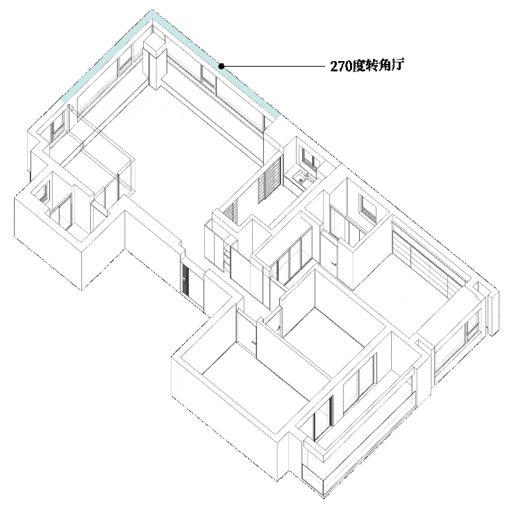因而,设计师不但规划了2个宽阔开放的阳台,还在餐厅尤其打造了270°角厅,用巨大的全屏清除里外界限。