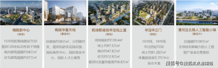 机场联络线华泾站机盖:接近华之门,用地面积约139.4万㎡,地上总开发规模约67.5万㎡,其中商办占地约47.8万㎡,未来也将成为热门商业地标。