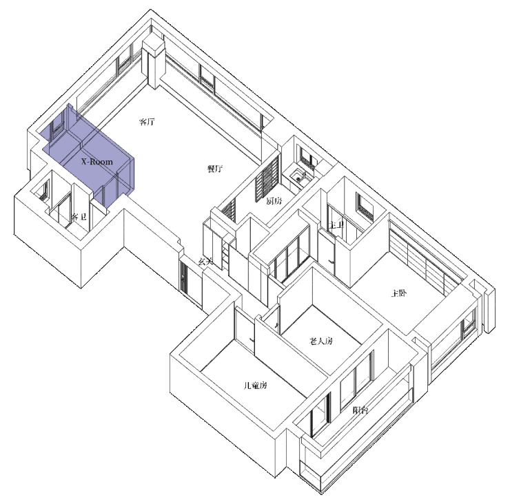 载重家庭的预埋成长“X-Room“。针对第二个孩子的家庭,它可以是主人电竞室和宽阔的衣帽间;针对三代同堂的家庭来说,它可以是卧房、休息室或茶楼。更丰富、更多样化、更高质量的生活体验与可变的效果并存。