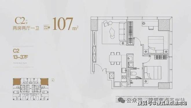 建面约80-88㎡,位于13-24F,客餐厅厨房都有功能更齐全