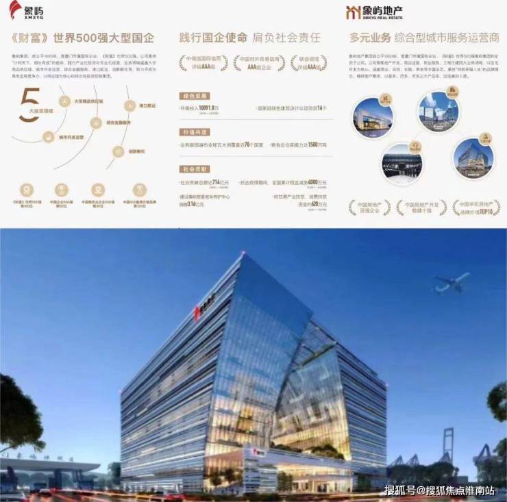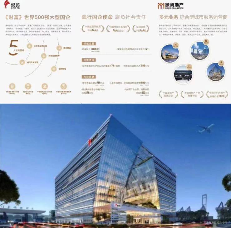 开发商象屿地产集团,成立于1993年,是厦门市属国有企业、《财富》世界500强象屿集团的全资子公司。秉持“构筑幸福人生“的品牌理念”,致力于打造受人尊敬的综合型城市服务运营商。公司连续多年获评“中国房地产百强企业”、“中国房地产开发稳健经营10强”、“中国华东房地产品牌价值TOP10”。