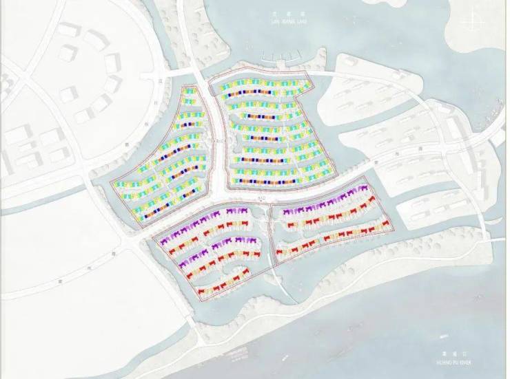 项目从此前曝光的设计方案就可以看出亮点,每一排别墅前都有一条渠道,引入水系,可以停游艇。