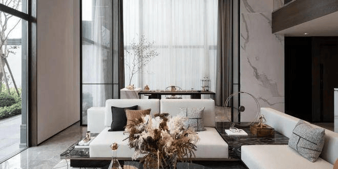 新中式园林设计:中央水景、藤编屏风、原木基调,归家即入画