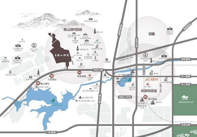 从未来科技城到春山明月大概20分钟路程,而且,未来科技城的中心其实不在阿里巴巴附近,而是要往西延伸。春山明月接壤科技大道,附近亦有城市轻轨,今天,临安撤市建区,青山湖科技城规划与未来科技城是一体的,“杭州硅谷墅区”的角色已然成熟。