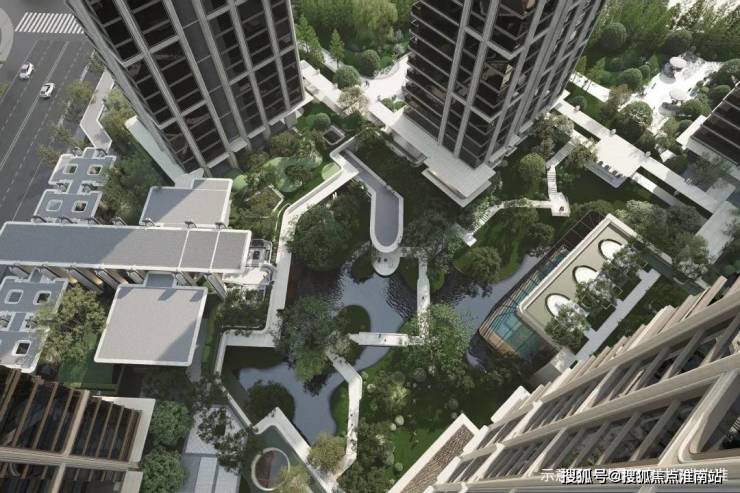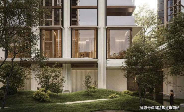 在景观方面,项目内部设置约3500㎡下沉庭院,地下通过坡地自然过渡至地上园区,在核心景观区,通过约6.6米超高架空与6.3米下沉庭院,打造约13米高差的全维森境体验