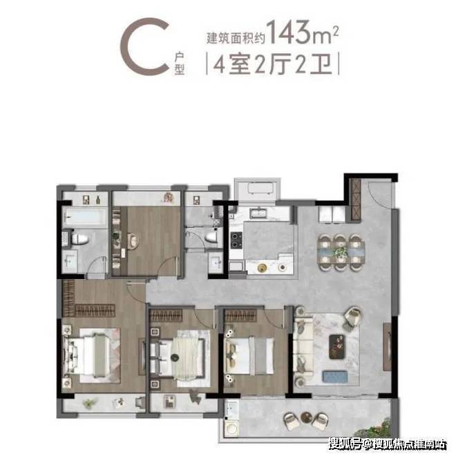 建筑面积约143㎡,4室2卫▼