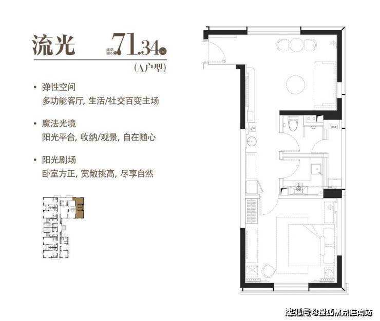 A|流光|建面约71.34m²|一室两厅一厨一卫