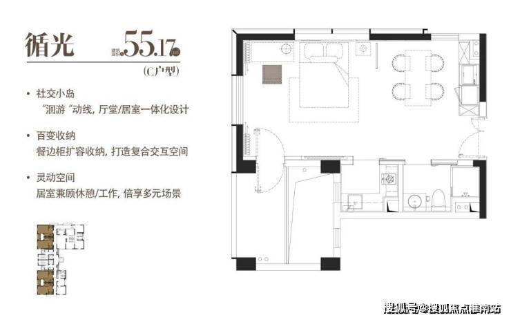 C|循光|建面约55.17m²|一室一厅一厨一卫